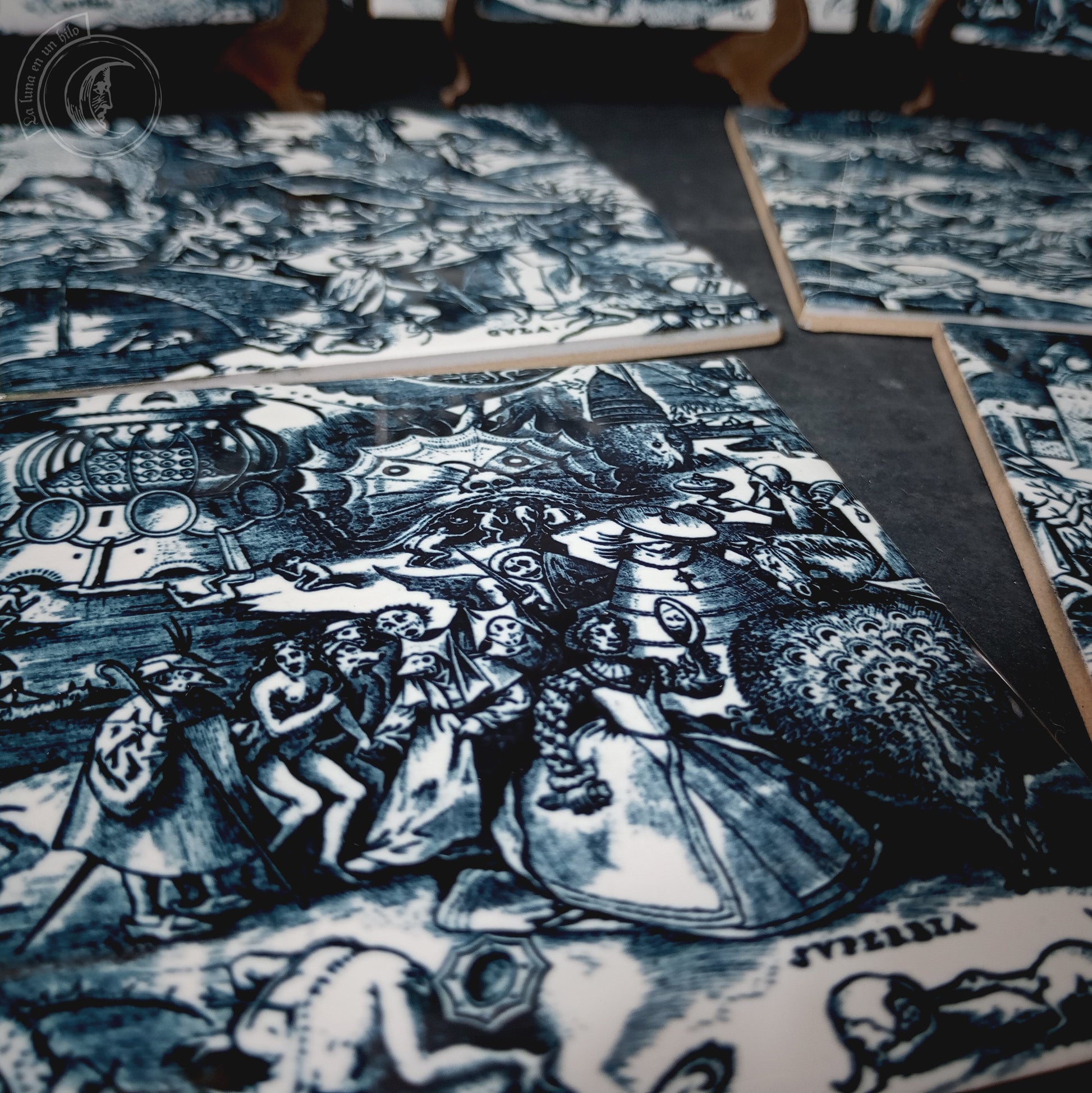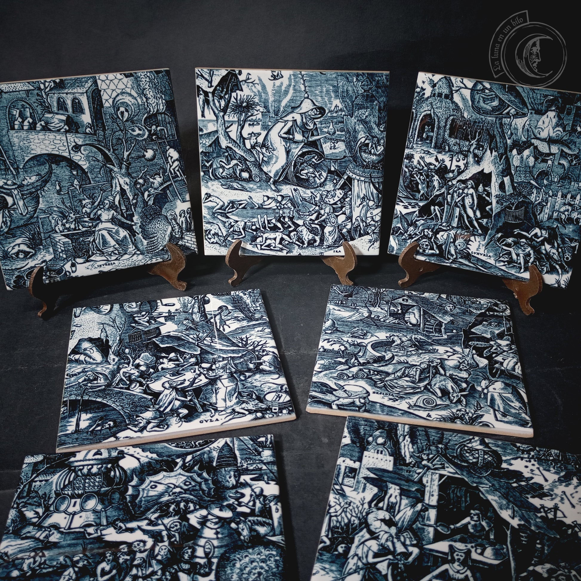 Set de 7 azulejos decorativos - Pieter Brueghel, Pecados Capitales
