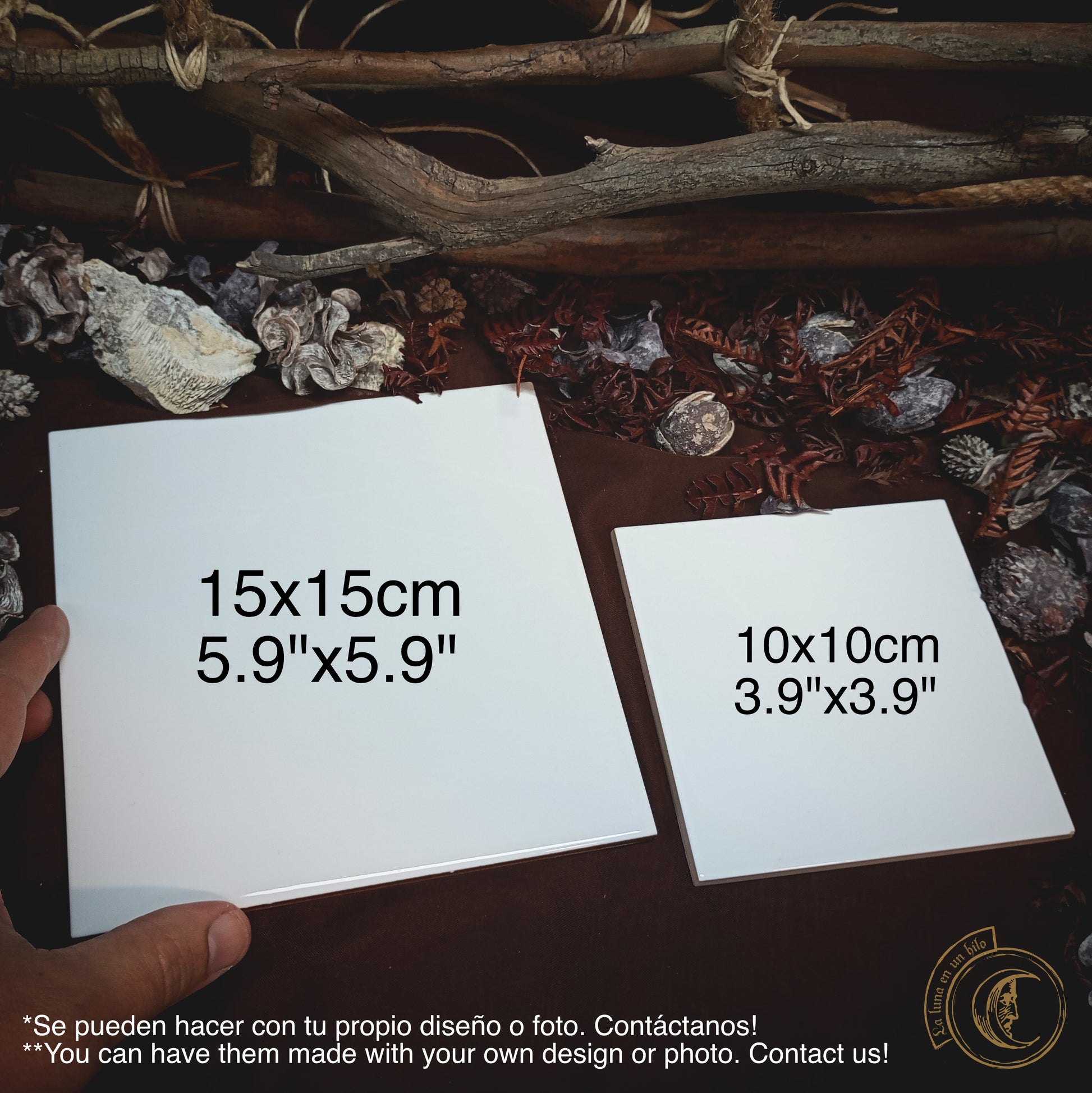 - Tailles disponibles : 15 x 15cm ou 10 x 10cm.